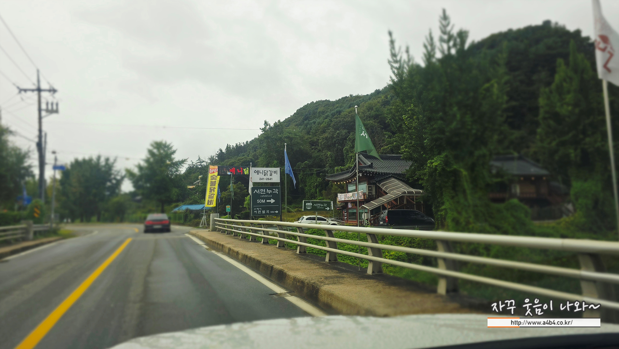 오른쪽 건물이 본관, 왼쪽 건물이 별관인데요. 오른쪽은 철판닭갈비, 왼쪽은 숯불닭갈비로 안내되어 있지만, 현재는 본관만 영업하고 있는 것 같네요. 연못물 색은 식욕을 올리지는 않네요.