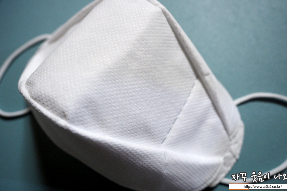마스크 겉감은 약한 엠보싱처리되어 있는 드라이한 느낌의 부직포가 사용 되었습니다. 착용감은 소트프와 하드한 마스크 사이의 착용감을 보여줍니다. 마스크 두께는 일반 KF94 마스크 수준입니다.