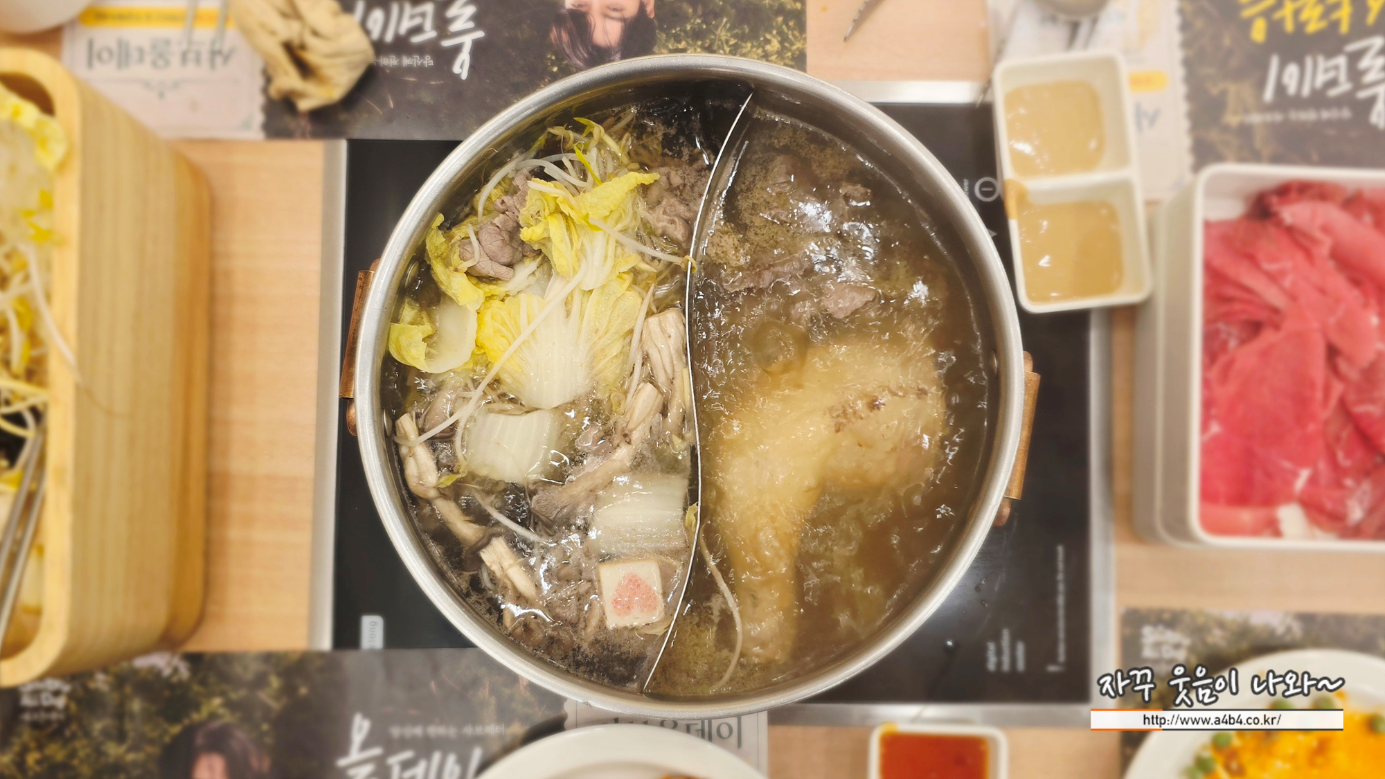 샐러드바를 한 바퀴 돌고오니 샤브샤브 세팅되어 있습니다.