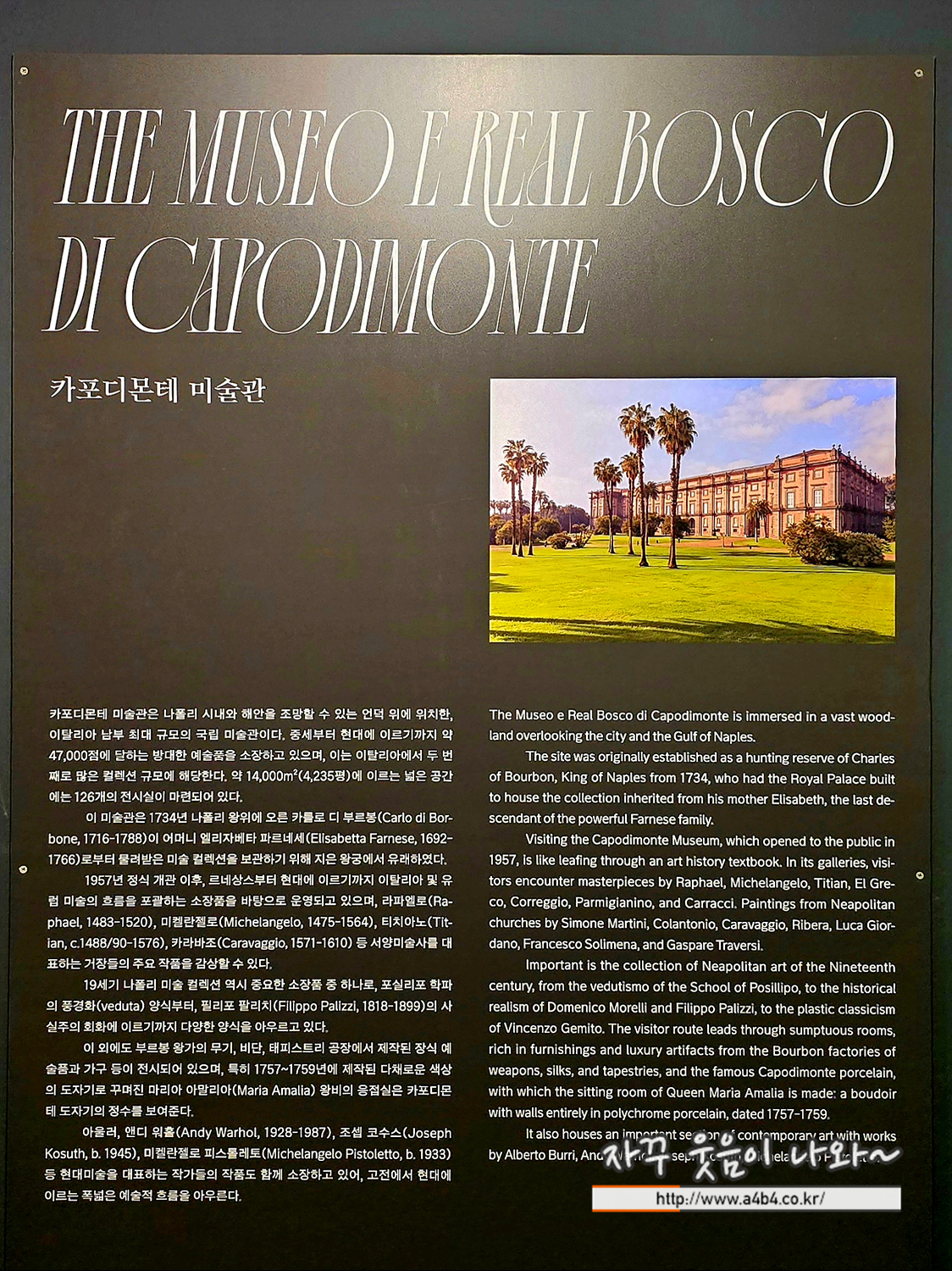 이탈리아 국립 카포디몬테 미술관 도록 가격은 49,000원에 배송비 별도, 대용은 상당히 상세하게 제작 되었네요.