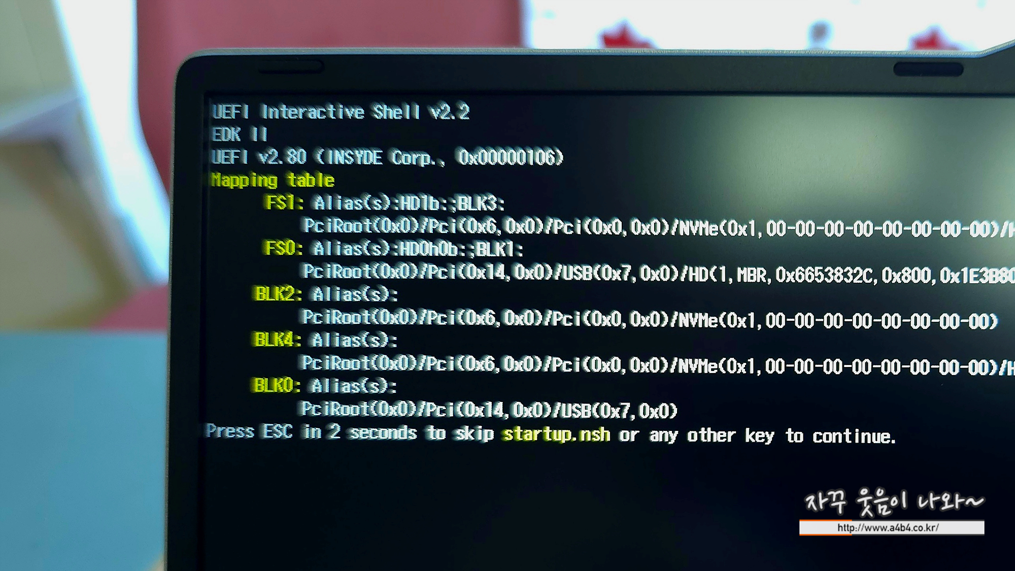 Boot Priority 1을 UEFI_Shell에서 외장 메모리로 변경해 주세요.