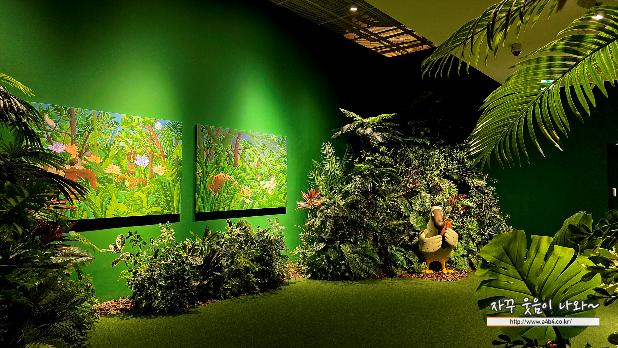 전시장 안쪽에는 밀림속에 있는 도도새와 회화 두 점이 전시되어 있습니다.