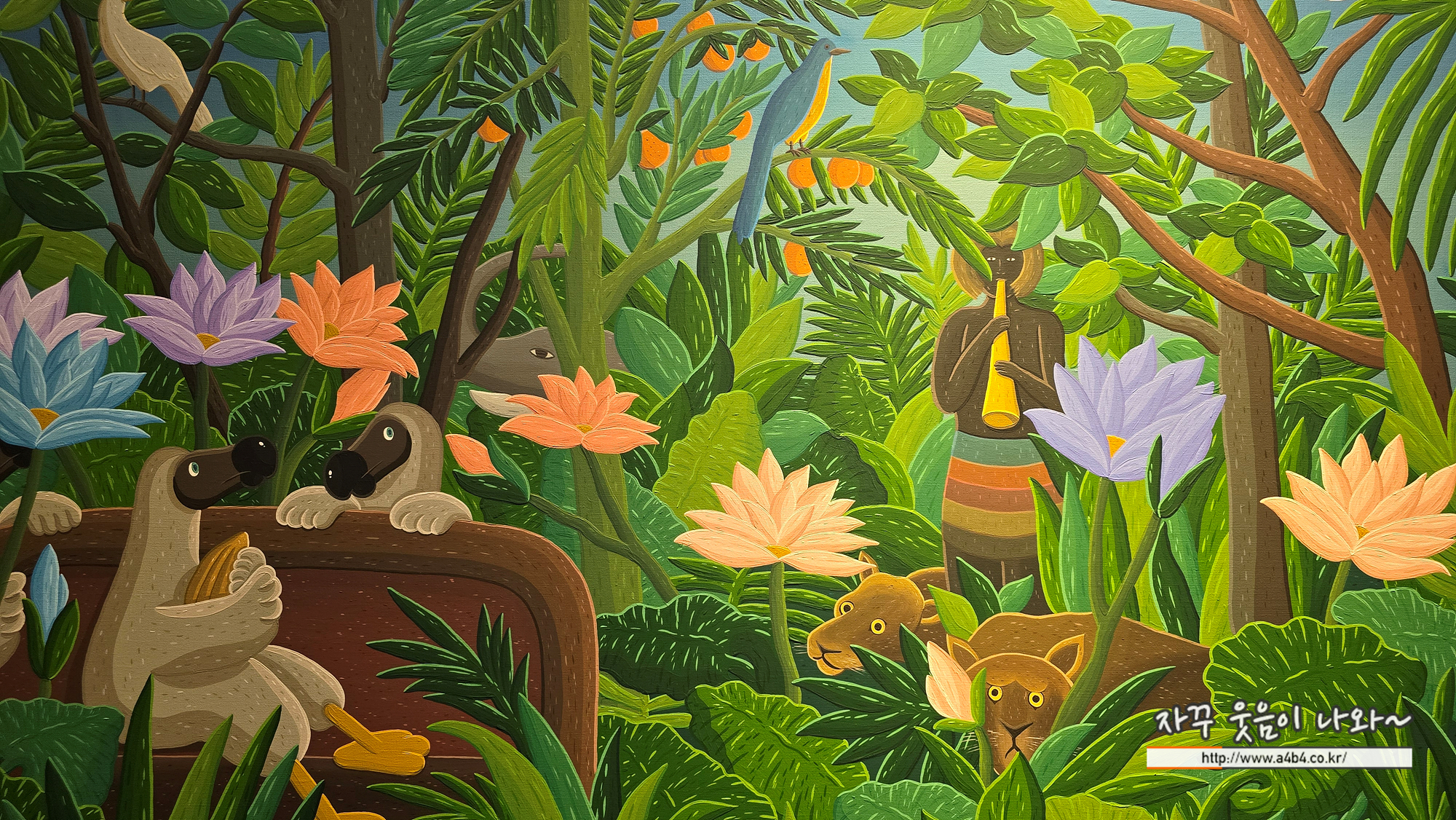꿈으로 유명한 초현실주의 화가 앙리루소의 작품을 차용한 김선우 작가의 작품들, 역시 주인공은 도도새