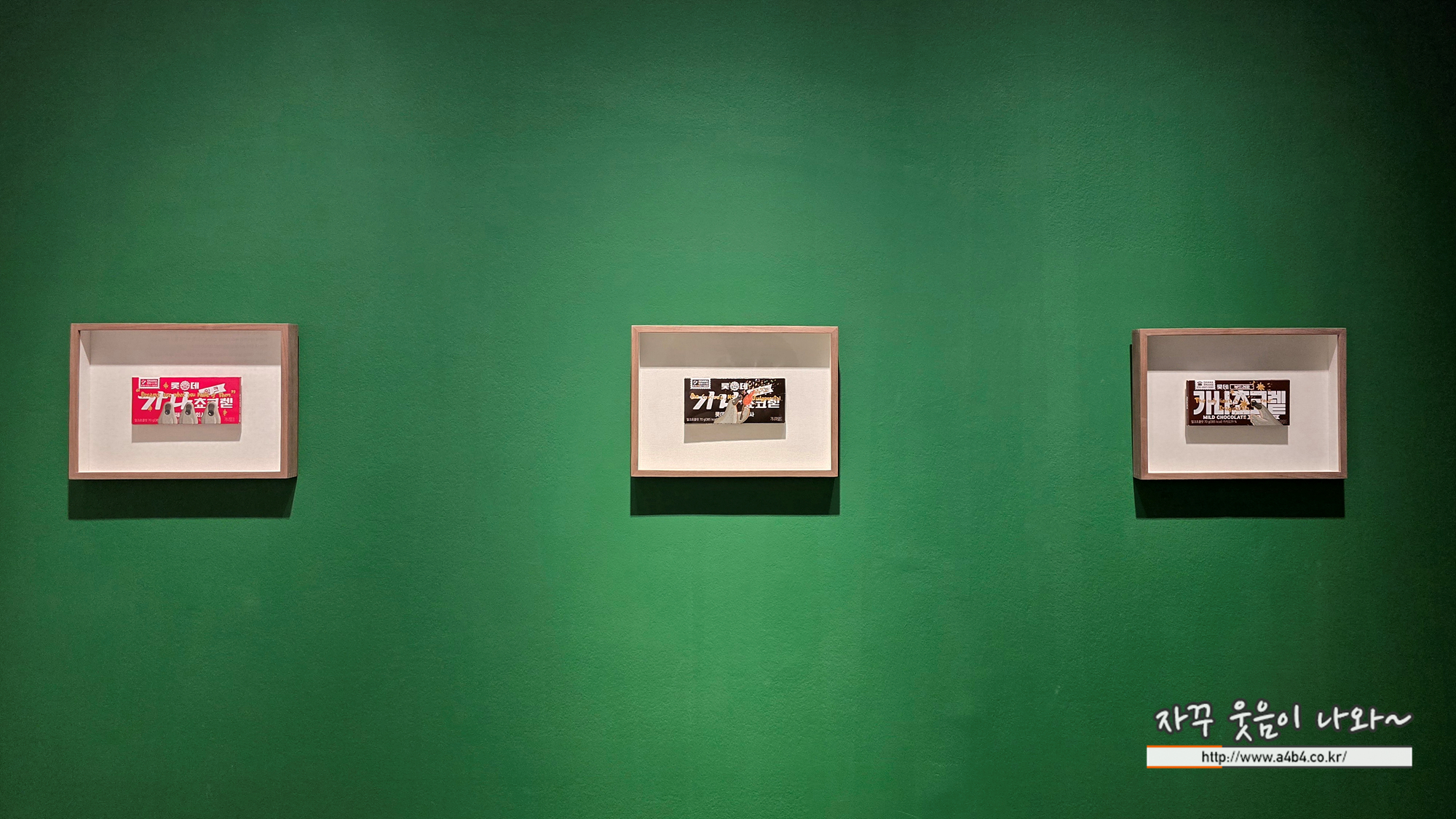 역대 가나 초콜릿 패키지가 전시되어 있는데요.