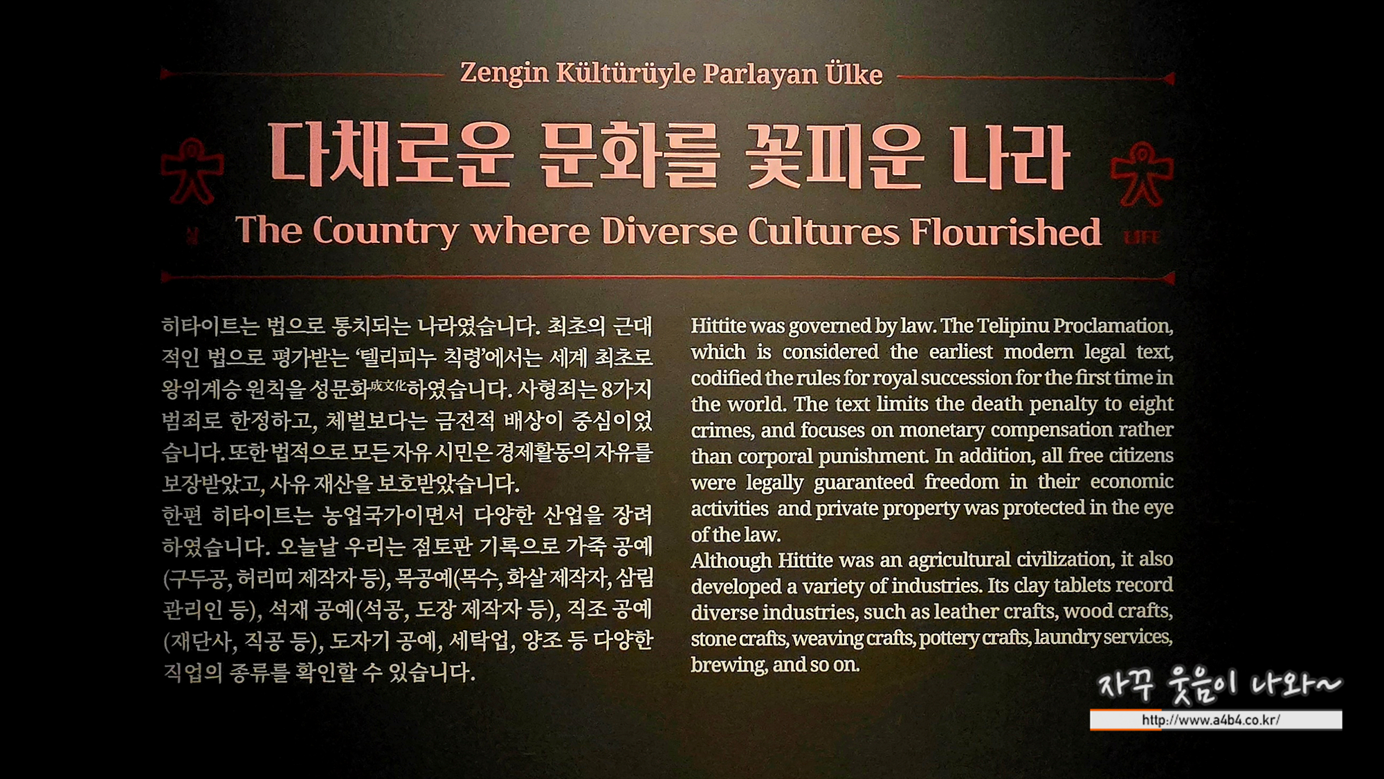 해당 공간에서는 히타이트 제국에 대한 간단한 설명과 멀티미디어 영상이 제공됩니다.