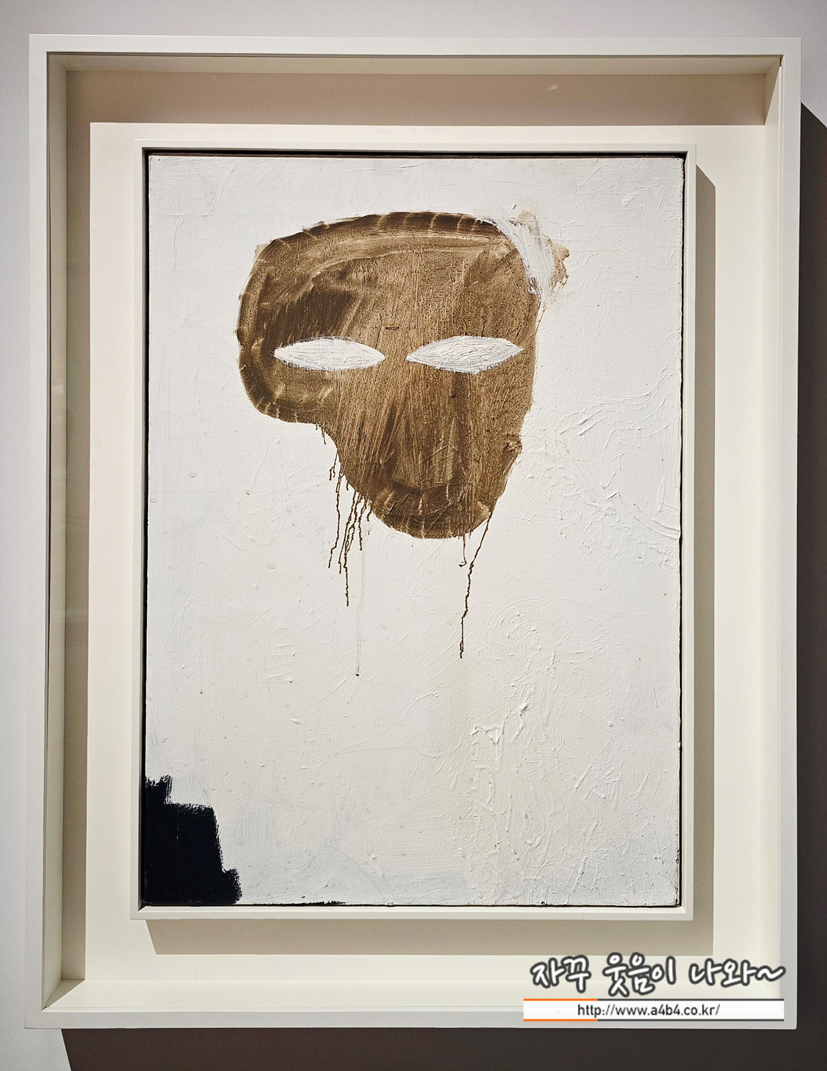 바로 오늘 소개하는 '장 미셸 바스키아 : 과거와 미래를 잇는 상징적 기호들' 전시회 첫 작품의 뒷면, 바로 유리창문에 작업한...
