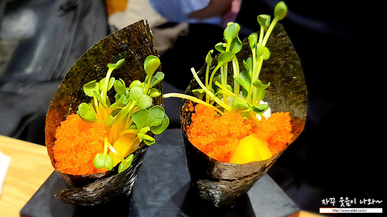 이미 초밥은 다 먹어버리고... 코스요리도 아닌데, 음식들이 나오는 시간차가 너무 크네요.