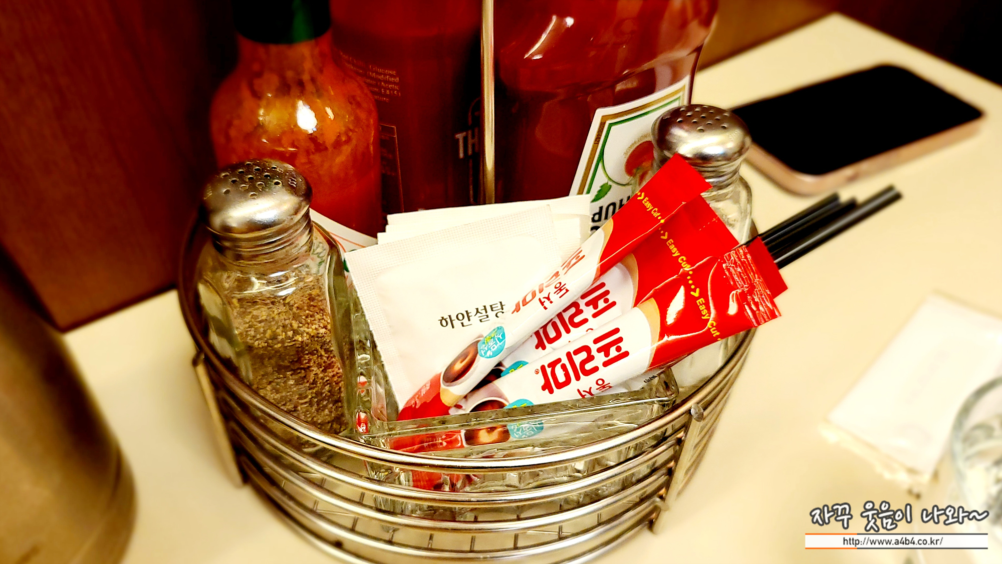 테이블에는 추억의 소스들과 후추가 마련되어 있고요.