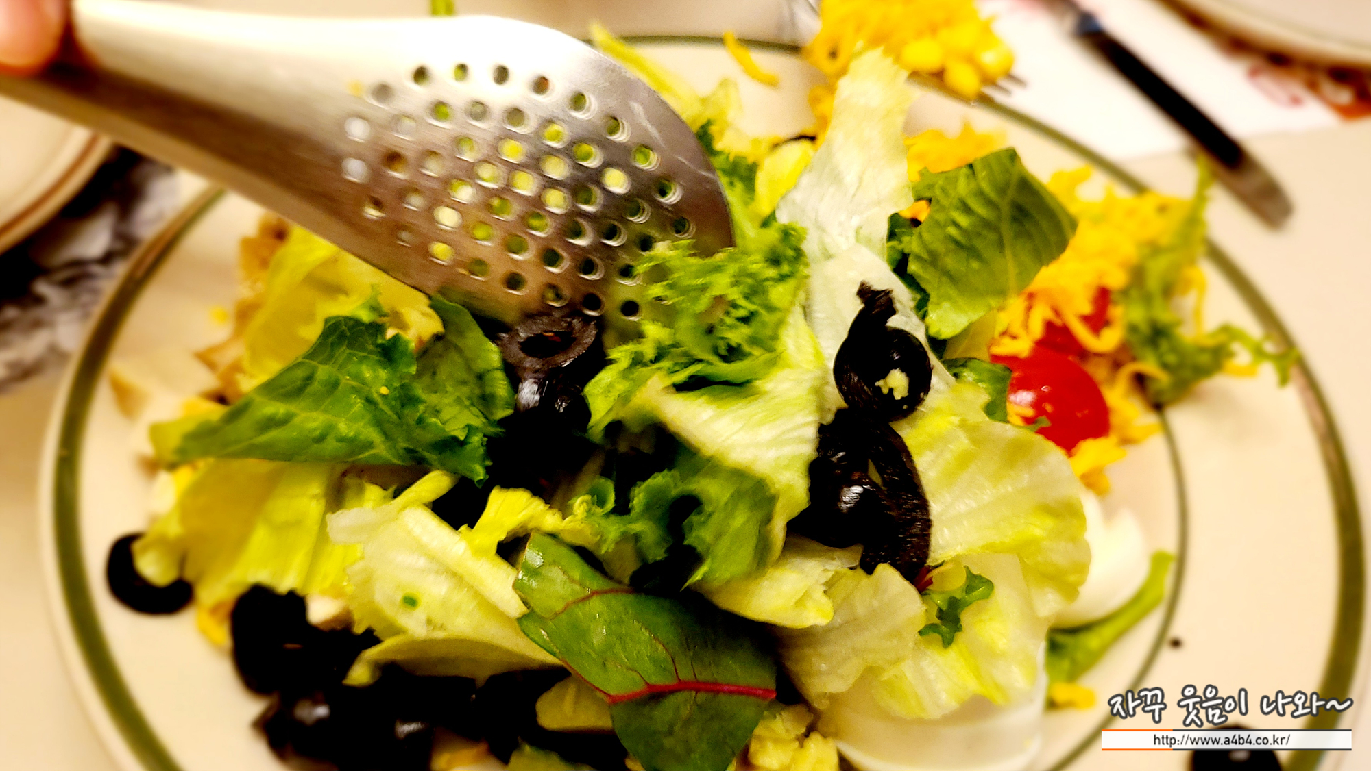 혼자 먹을 수 있는 양은 아니고요. 2~3명이 메인 음식 나오기 전에 나누어 먹기에 좋은 오리지널 팬케이크 하우스 잠실점의 대표 샐러드 메뉴입니다.