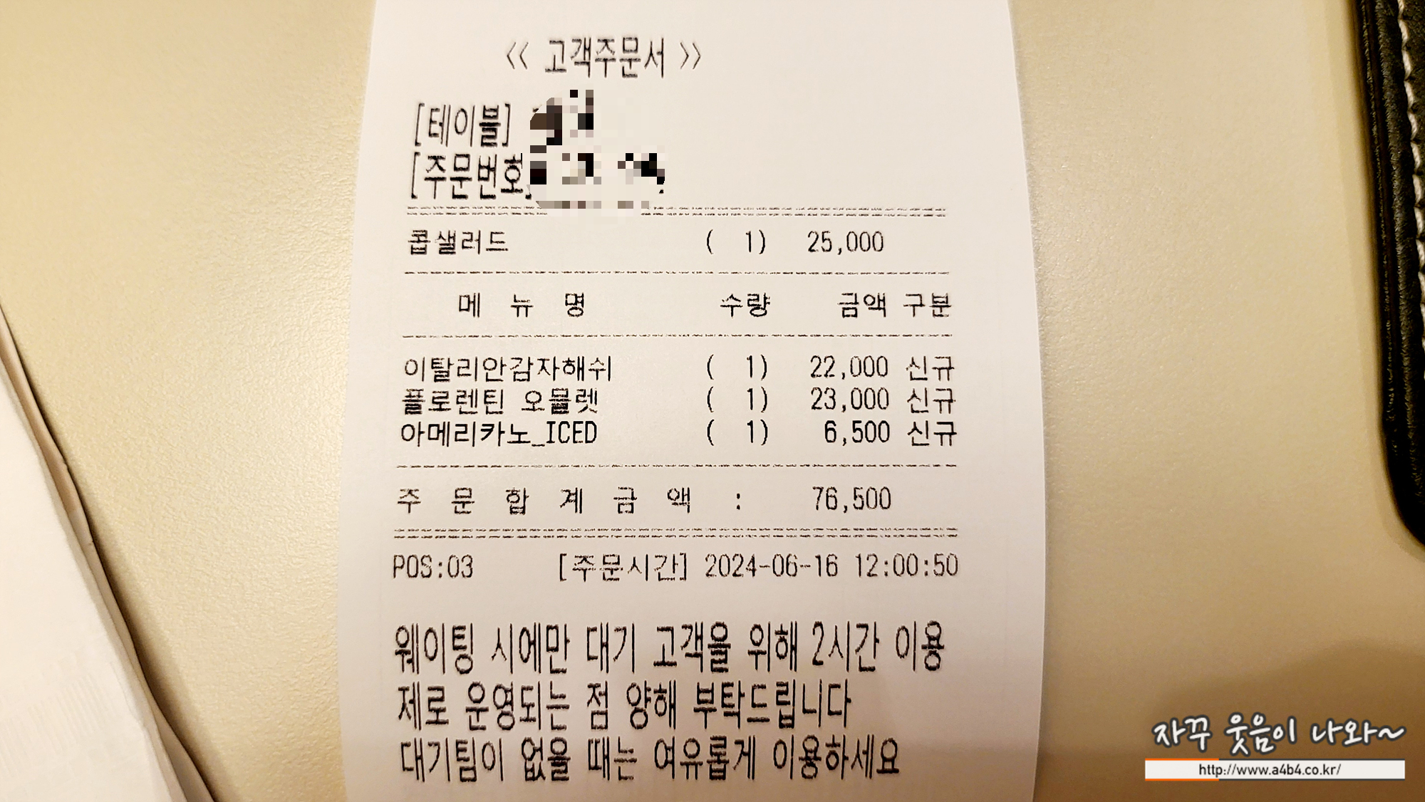 매장 이용고객에 대해서는 KT 송파빌딩 이용시 결제하면서 차량번호를 말하면 2시간 무료주차가 지원됩니다. 2시간 초과시에는 소피텔 앰배서더 서울 호텔 앤 서비스드 레지던스 주차요금인 10분에 1,000원 씩 주차요금이 청구 됩니다.
