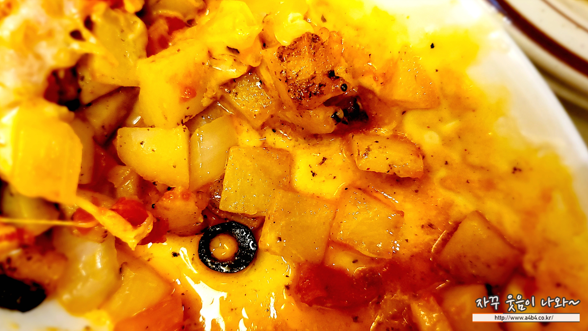 치즈가 얹어진 감자튀김은 조금만 더 통통했으면 식감이 더 좋았을 것 같은데. 다소 마른 감자는 아쉬웠네요.