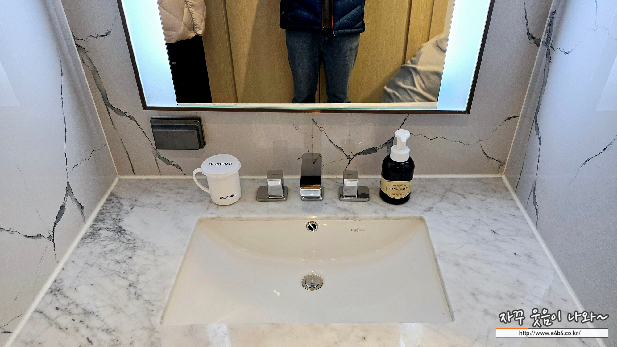 저희는 강릉 세인트존스호텔 펫룸 3인 + 반려견 한마리 조건으로 예약해서 침대는 더블과 싱글침대 두 개가 나란히 배치되어 있습니다. 침구 컨디션은 양호하고 침대는 약간 하드한 타입으로 제가 좋아하는 타입입니다. 세인트존스 호텔 침대 컨디션은 만족...