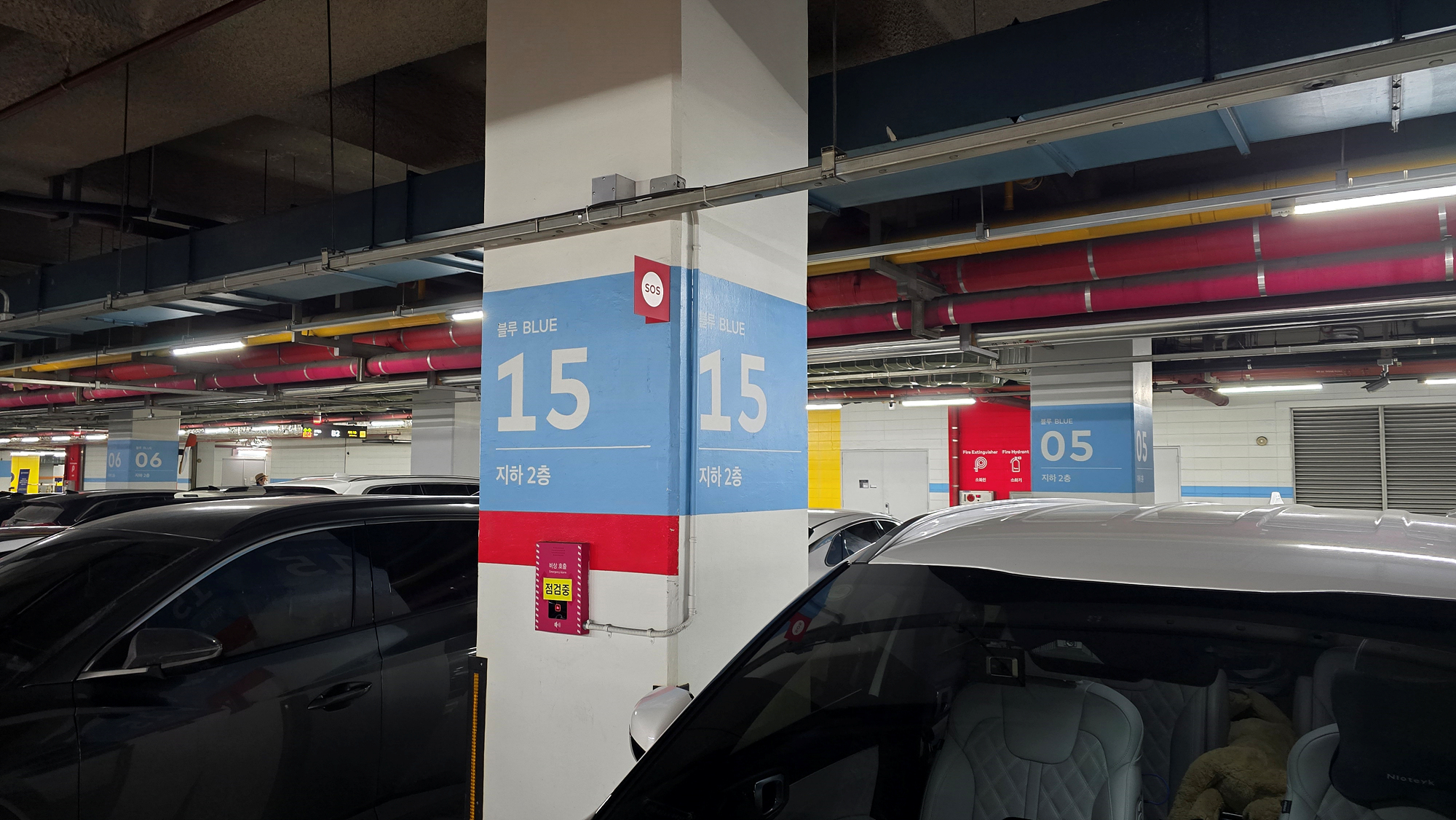 앞에서도 설명했지만 강변 테크노마트 주차장은 지하 2층부터 지하 5층 2,100여대의 주차가 가능한 상당히 넓은 주차장입니다. 차량 주차 시 주차된 층과 기둥번호를 확인하지 않으면 난감할 수 있으니 꼭 스마트폰으로 주차위치 촬영하세요.