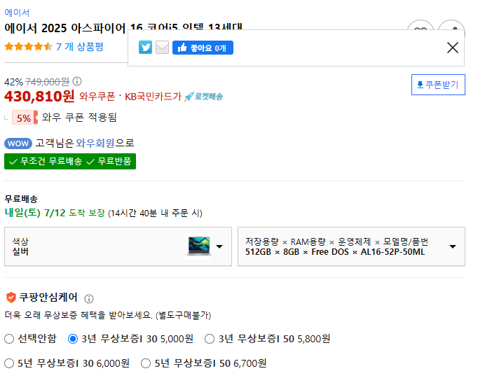 [내돈내산] 에이서 노트북 2025 아스파이어 16 코어i5 인텔 13세대 (AL16-52P-50ML) (8) | 2025.07.16 |