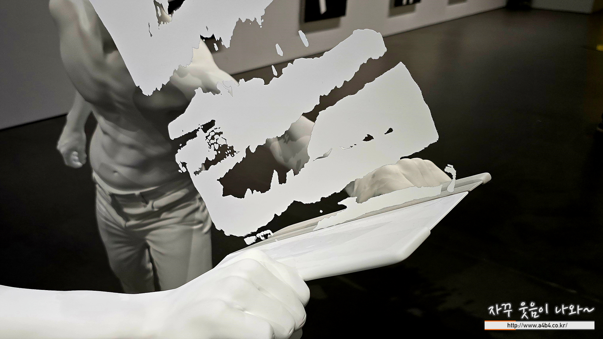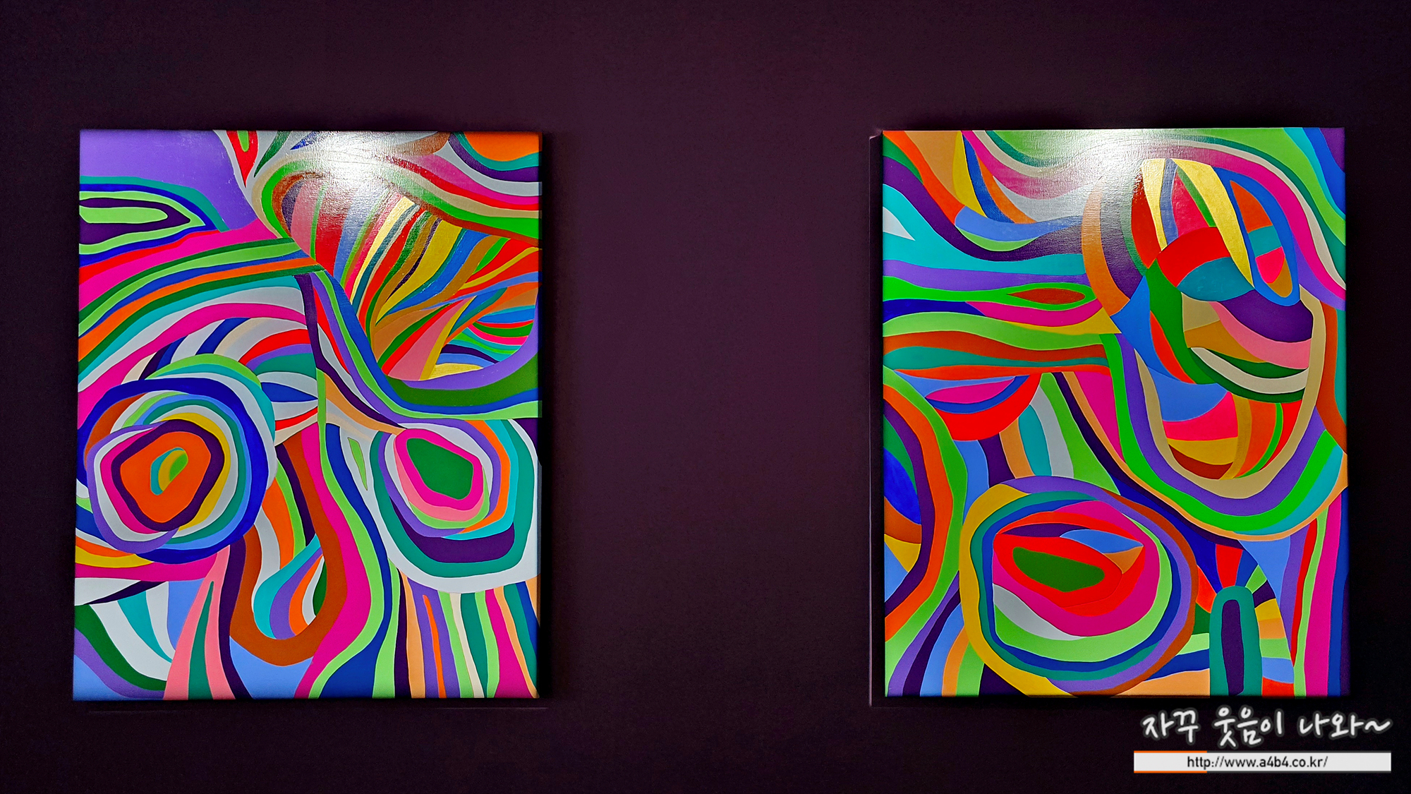 처음에는 플렉스 간판처럼 필름에 출력하고 뒤에서 조명을 비추는 복제품이 전시된 줄 알았습니다. 어운 실내에서 조명을 받으니 작품에서 형광빛이 나는 느낌이 드네요.