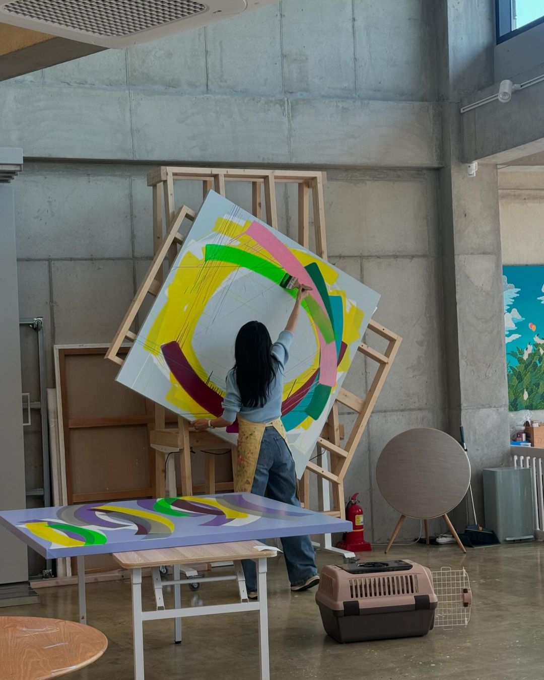 하태임 작가님의 인스타그램을 보니 회전 이젤을 제작하셔서 작업 하셨다고 하네요.