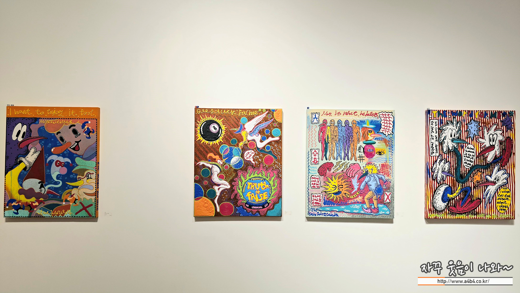 Love Me till I’m Me Again! : 사랑해줘, 내가 다시 나일 때까지 전시회에 전시된 갈리나먼로 (Galina Munroe) 작품은 아크릴로 작업하고 그 위에 바니시 처리되어있습니다.