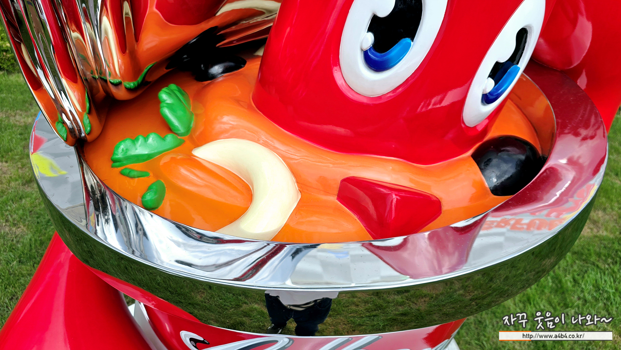 석촌호수 동호에 전시되어 있는 랍스터 풍선과 비슷한 모양의 작품인데요. 랍스터의 목에 소변기가 걸려 있네요.