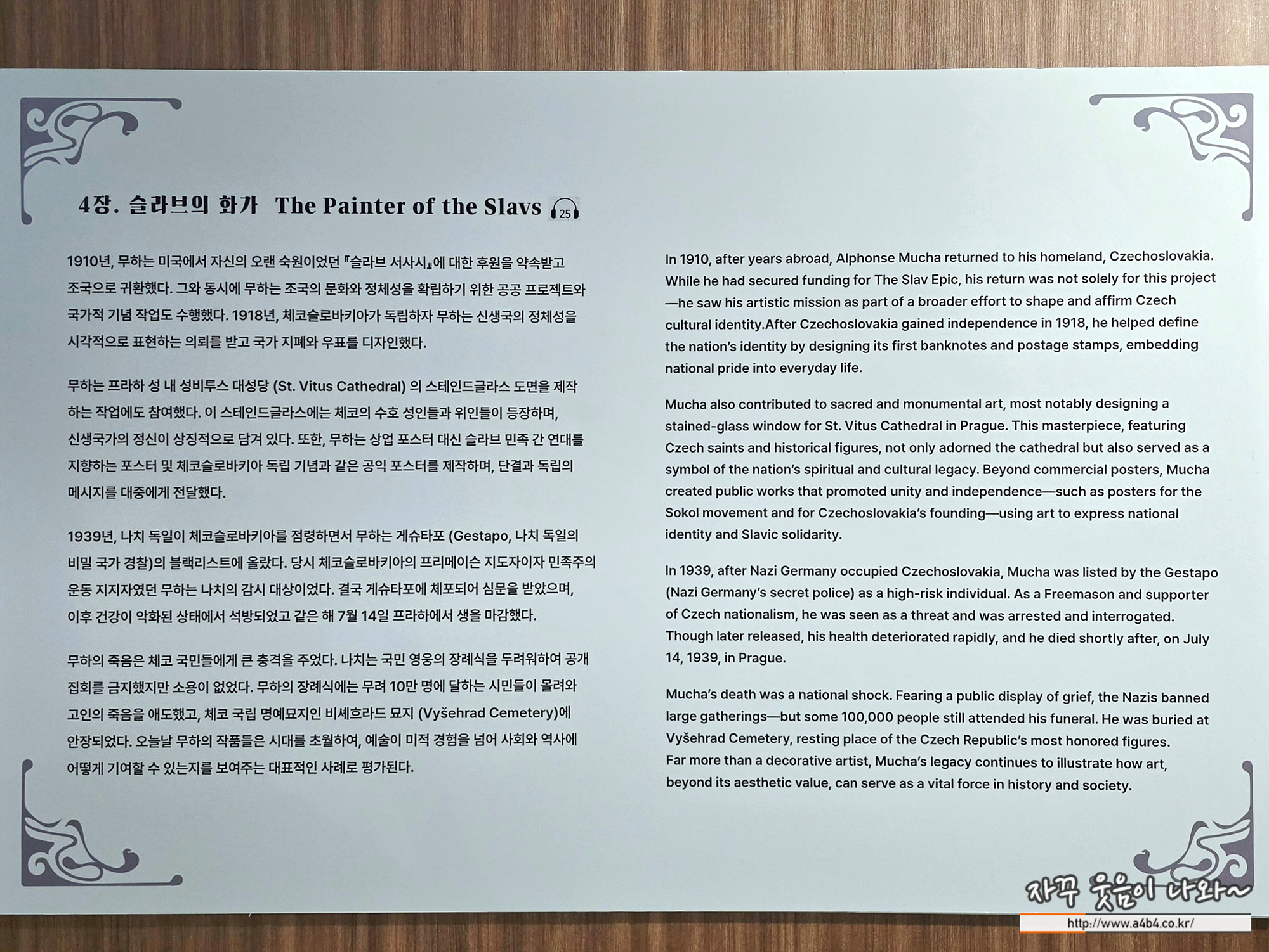 알폰스 무하가 단순한 유명 화가를 넘어 체코의 국민화가가 될 수 밖에 없었던 이유를 만나불 수 있는 공간