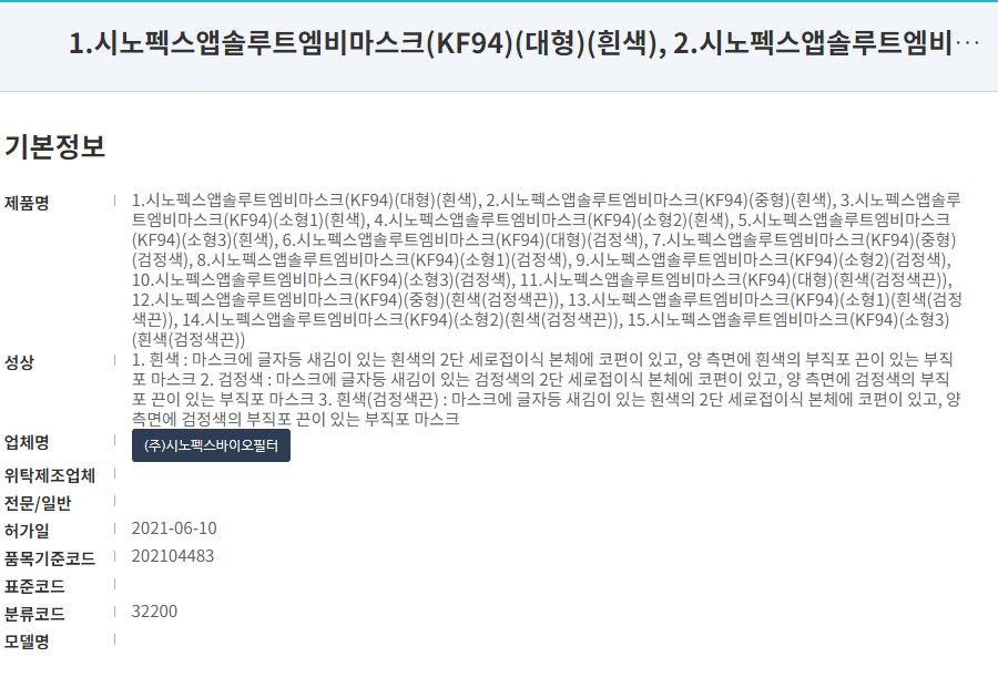 아래는 오늘 리뷰하는 KF94 오라클마스크 정보입니다. 식약처 불량마스크로 등록 이력은 없습니다.