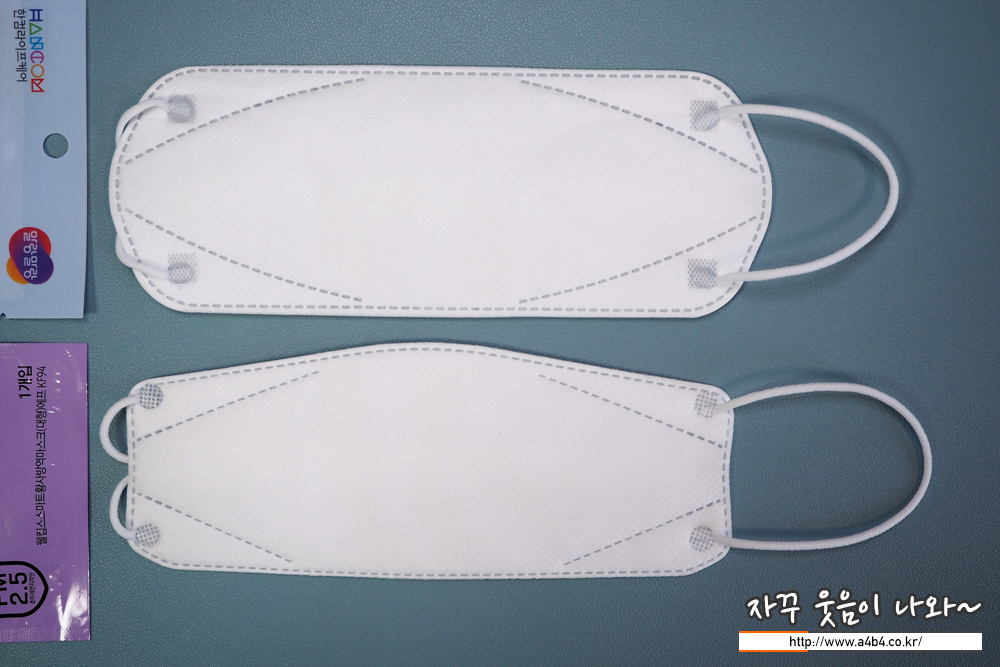 두 제품 부직포 부분의 모양이나 사이즈도 동일합니다. 또한 마스크에 각인된 문양들도 동일합니다.
