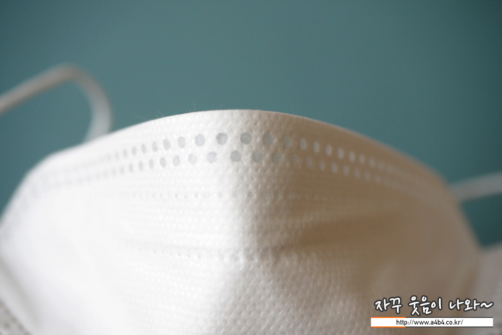 KF94 유앤아이 마스크는 드라이한 촉감의 부직포가 겉감으로 사용되었습니다. KF94 마스크 중에서는 두께감이 약간 있는 4중필터 방식의 마스크지만 하드한 타입의 마스크는 아닙니다. 탄탄하게 착용핏이 나오지는 않습니다.