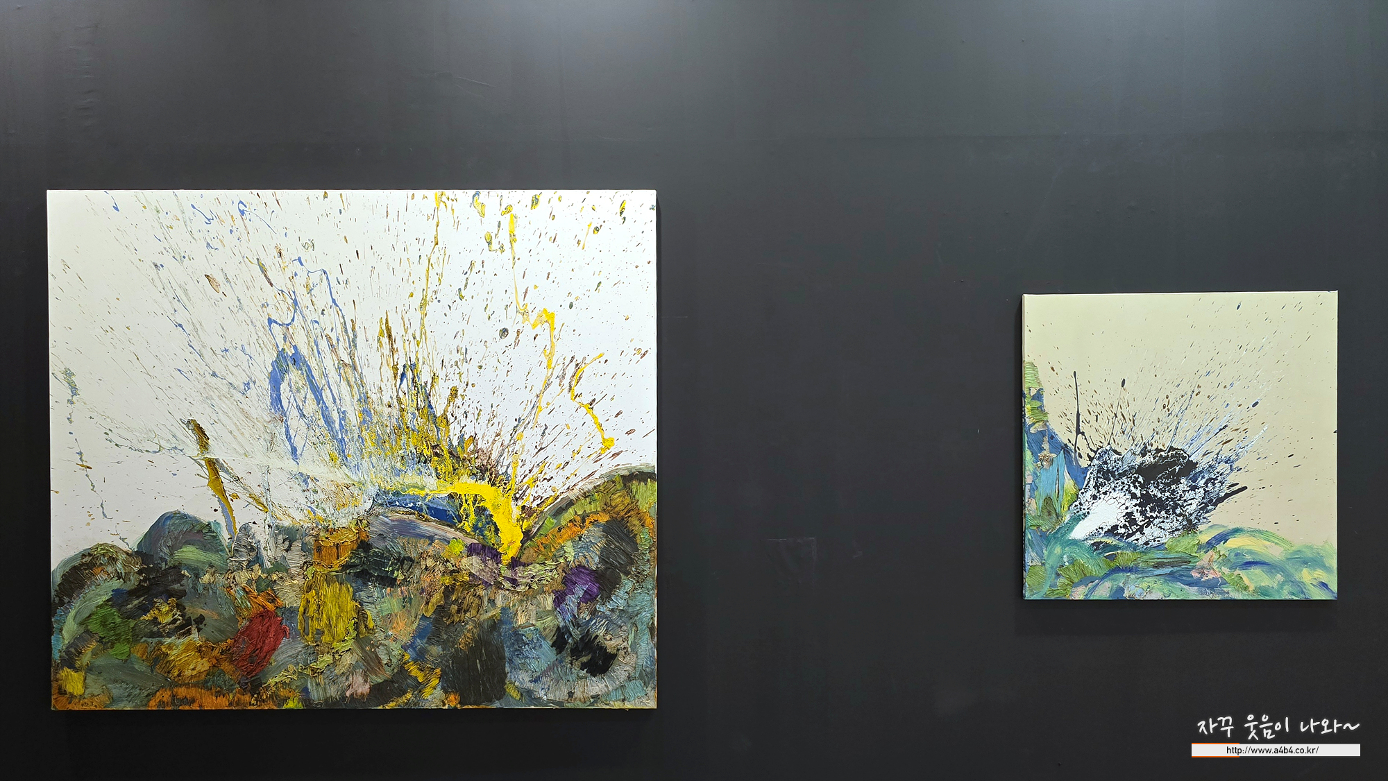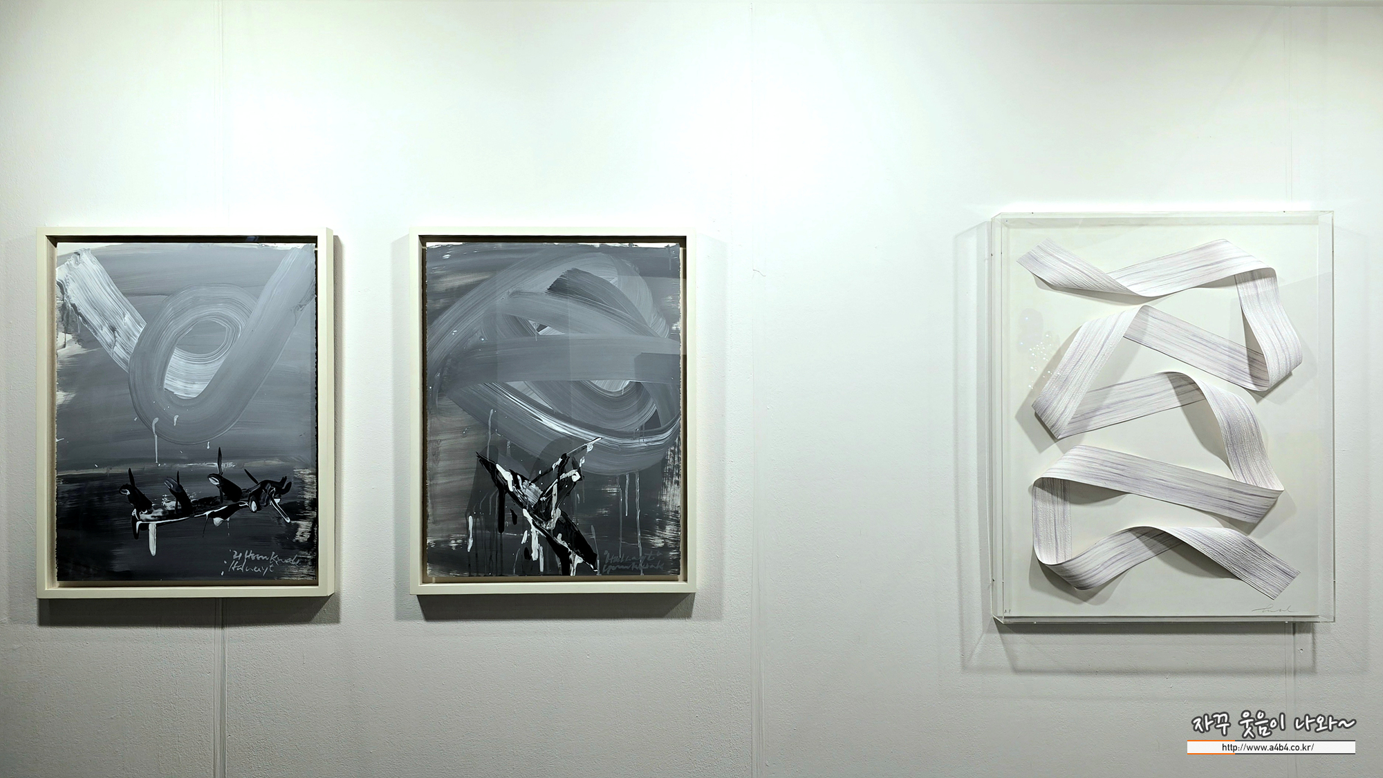 전시장 구성은 아트페어 느낌이 나게 구성되어 있습니다. 작가별 두 세점의 작품들이 전시되어 있는데요.