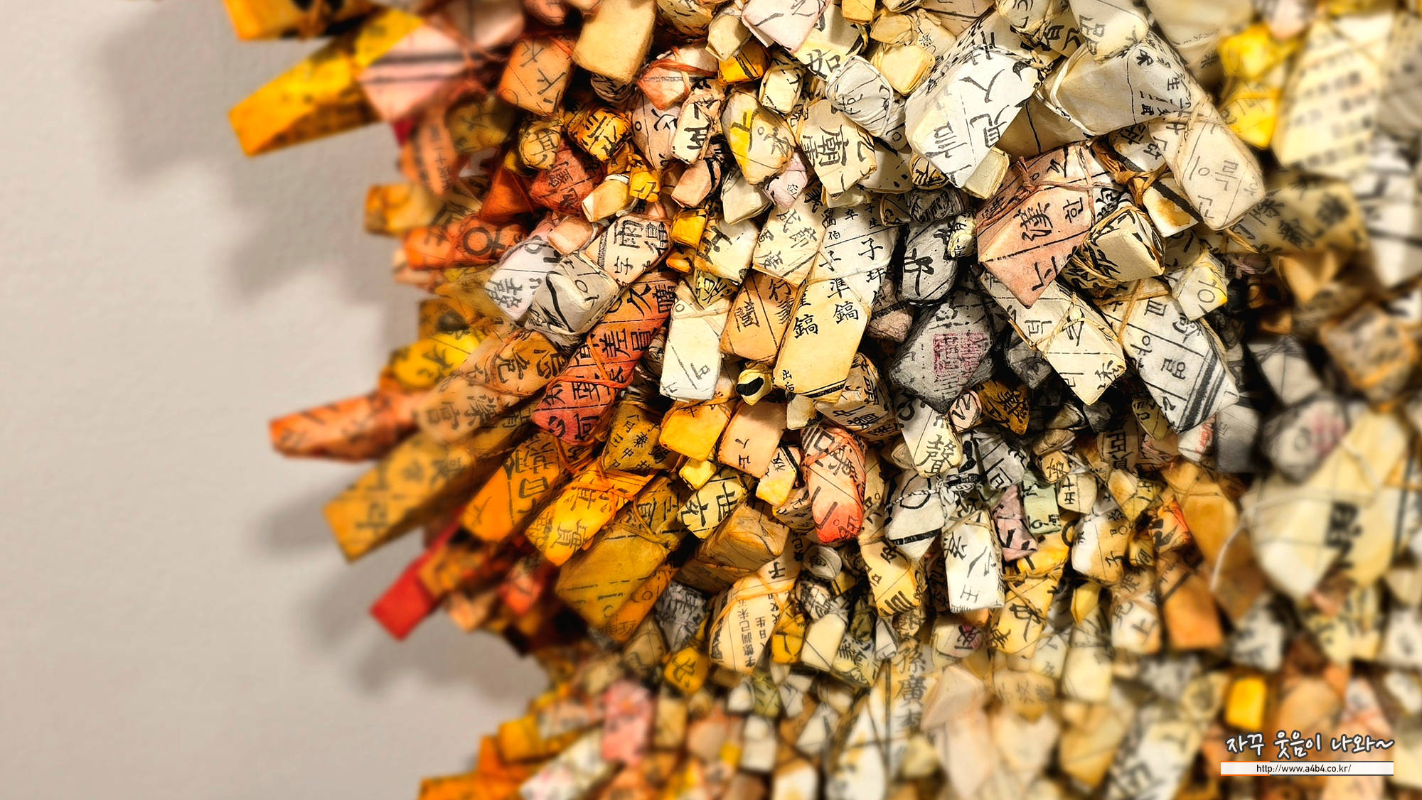 한지 조각들이 모여 형성하는 거대한 분화구 혹은 유기적 지형 같은 형상은 개별적인 삶의 파편들이 모여 거대한 역사를 이루는 생명의 역동성과 시간의 축적을 상징합니다. 특히 세월의 흔적이 담긴 고서의 글귀들은 작품에 다층적인 의미를 더하며, 관람객에게 한국적 정체성과 함께 보편적인 인류의 서사를 사유하게 하는 명상적 깊이를 선사합니다. 이처럼 전광영은 가장 한국적인 소재를 현대적인 조형 언어로 재해석하여 국제 미술계에서 독보적인 예술적 위상을 확립하고 있습니다.