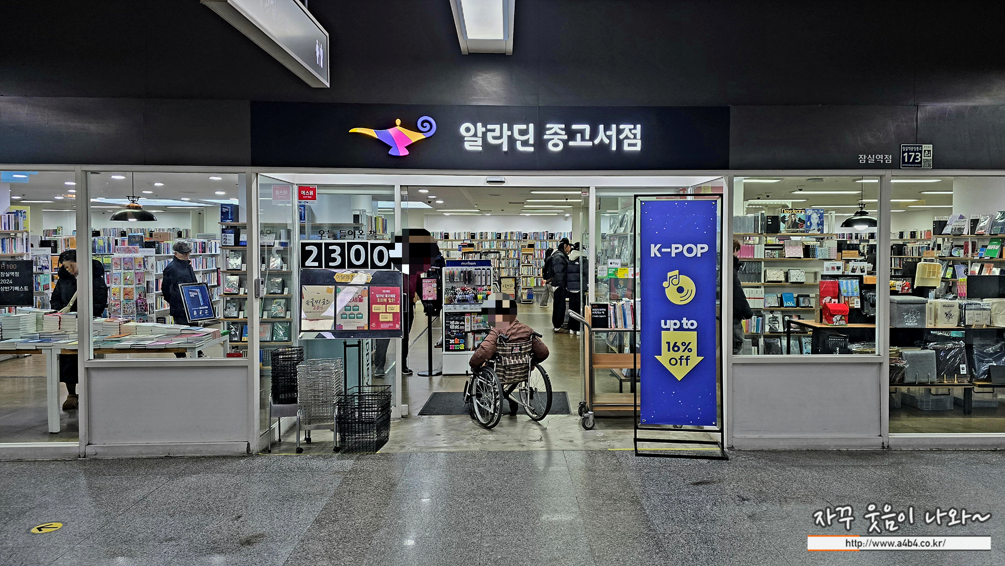 엘리베이터에서 내리면 바로 앞에 알라딘 중고서점이 보입니다. 약 30미터 정도 거리인 것 같네요.