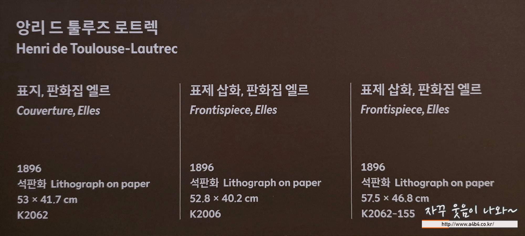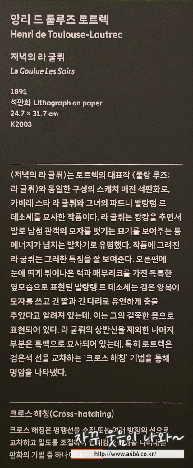 로트렉에 대한 추가적인 이야기는 지난 2020년에 열린 '툴루즈 로트렉 : 물랭루즈의 작은거인' 전시회 후기 참고하세요.