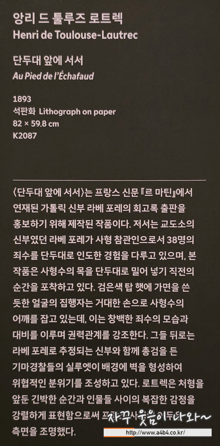 사진을 확대하시면 툴루즈 로트렉 : 몽마르트의 별 전시회 작품의 상세한 설명과 제목을 확인할 수 있습니다.