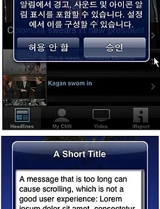 분류 전체보기3892 ★ 해당 카테고리는... 해당 내용은 웹 및 모바일 기획 및 디자인에 처음 입문하는 학생 및 초보 기획자를 대상으로 작성된 내용입니다. 이에 일부 용어는 한글화 또는 쉽게 풀어 사용되었습니다. 또한 일부 서비스의 경우 기획 의도와는 다르게 설명을 위한 목적으로 분석된 내용들도 있습니다. 이점 고려하여 내용을 이해해 주시기 바랍니다. 2011. 1. 6. (1/2) 뉴 미디어 디자인의 기본요소 - 스마트폰/태블릿 PC를 중심으로... 1. 뉴미디어디자인의 개념 1) 뉴미디어 정의 전통적인 개념의 디자인 은 크게 인쇄매체(신문, 잡지, 책 등)와 전자매체(TV, 라디오 등) 디자인으로 정의되었다. 불과 몇 년 전 까지는 위에서 언급한 매체를 제외한 다른 device상에서 구현되는 서비스를 뉴미디어 (인터넷 등)로 정의하였으나, 최근 스마트폰, 태블릿 등의 새로운 device가 등장하면서 뉴 미디어에 대한 정의가 다시 이루어지고 있다. 이번 단원에서 정의하는 뉴 미디어는 최근 2~3년 사이에 새로 출시되었거나 각광받고 있는 device를 기반으로 기존매체와의 디자인적인 특징과 차이점을 정의 하고자 한다. 또한 학습할 부분도, 스마트폰, 태블릿PC 등을 중심으로 언급하고자 한다. 2) 뉴미디어 디자인의 특징 (1) 쌍방향성/상호작용성 뉴미.. 2011. 1. 6. (2/2) 뉴 미디어 디자인의 기본요소 - 스마트폰/태블릿 PC를 중심으로... (4) 개인화 불특정 다수를 대상으로 배포되는 기존의 미디어와 다르게 뉴미디어의 경우에는 이용자 개개인에 맞추어 페이지가 구성되거나 서비스가 제공된다. 뉴미디어 디자인의 경우 이와 같은 특장점을 고려하여 디자인에 반영하여야 한다. 아래 네이버어세 제공하는 ‘네이버 me’서비스의 경우 개인화된 서비스를 중심으로 페이지를 구성하여 제공한다.이를 통하여 초기페이지에서 개인화된 서비스에 대한 접근성을 높이고 이용자의 만족도를 극대화 할 수 있다. 아래 이미지는 IP-TV에서 개인화 기능에 대한 예시이다.이용자가 방송을 시청하면서 자주보는 채널이나 콘텐츠를 등록할 수 있으며, 초기 화면에서 해당 목록에 바로 접속이 가능하게 구성되어 있다. 이러한 특징은 기존의 올드 미디어에서는 구현할 수 없는 기능이며, 많이 사.. 2011. 1. 6. (1/3) 뉴미디어 UI의 개념 - Bar : The Status Bar, Navigation Bar, Tool Bar, Tap Bar 1. 개요 최근 스마트폰과 태블릿 PC의 보급이 급속화 되면서, 해당 디바이스에 대한 UI의 중요성이 대두되고 있다. 해당 디바이스의 경우 기존 PC에서 사용하는 방식과 큰 차이를 느끼지 못하지만, 해당 기기에 최적화된 차별화된 UI 요소들이 지원되고 있다. 여기에서는 스마트폰과과 태블릿PC에서 구현되는 주요한 UI구성에 대하여 학습하고, 해당 요소들이 어떠한 개념을 가지고 서비스에 적용되는지를 학습하도록 한다. 2. Bar 1) The Status Bar 상태바는 해당기기의의 중요한 정보 및 상태를 보여주는 바이다. 아래와 같이 전화 및 무선접속 상태, 베터리 잔량, 현재 시간 등 해당 기기를 사용하면서 이용자가 꼭 알아야 하는 중요한 정보를 제공하는 부분이다. 아래 이미지는 아이패드와 아이폰, 옵티머.. 2011. 1. 6. (2/3) 뉴미디어 UI의 개념 - Content Views 1 : Popover, Split View, Table View 1) Popover 팝오버는 사용자가 어플리케이션을 이용하는 과정에서 네비게이션 바의 컨트롤 버튼을 클릭하거나 화면에서 지정된 링크를 클릭 하였을 때 기존 화면위에 오버되어 출력되는 기능이다. 해당 기능은 아이패드 등 태블릿 PC에서만 지원되며, 기존 스마트 폰 사용시 반복적으로 화면을 오고가는 불편을 해결해 주는 기능이다. 오른쪽 이미지는 일정을 입력하는 과정에서 반복기능을 호출하는 화면이다. 배경에 일정이 출력되어 있는 상태에서, 어떠한 주기로 일정을 반복할까에 대한 옵션을 팝오버로 출력해 주고 있다. 이러한 기능을 통하여 메인화면이 유지된 상태에서 각각의 옵션을 쉽게 호출하고 닫을 수 있는 UI를 제공한다. 또한 팝오버 화면에서는 아래와 같이 테이블, 이미지, 지도, 텍스트, 웹 등의 다양한 구성물.. 2011. 1. 6. (3/3) 뉴미디어 UI의 개념 - Content Views 2 & Controls : Alert, Action Sheet, Modal View 4) Alert 경고창은 어플리케이션이나 기타 서비스를 이용하는 과정에서 사용자 주의를 요하는 경우 또는 추가 옵션이나 기능을 제공하고 이용자가 이를 인지하거나 선택 할 수 있도록 하는 기능이다. 기능적으로 해당 창은 화면의 중앙에 위치하도록 배열하며, 이용자가 이를 확인(해지)하기 전에는 현재 실행중인 응용 프로그램을 사용할 수 없게 구성한다. 또한 경고창의 내용은 가능하면 짧고 간결하게 제공되어야 한다. 오른쪽 하단의 이미지와 같이 긴 문장의 경고문은 피해야 한다. 통상 한줄에서 두줄로 간결하게 내용이 제공되어야 한다. 5) Action Sheet 액션 시트는 사용자가 실행한 작업과 관련하여 기능을 선택할 수 있도록 구성한 세트를 정의한다. 엑션 시트의 경우 아이폰과 아이패드에서 구현되는 방식과 디자.. 2011. 1. 6. 이전 1 ··· 522 523 524 525 526 527 528 ··· 649 다음