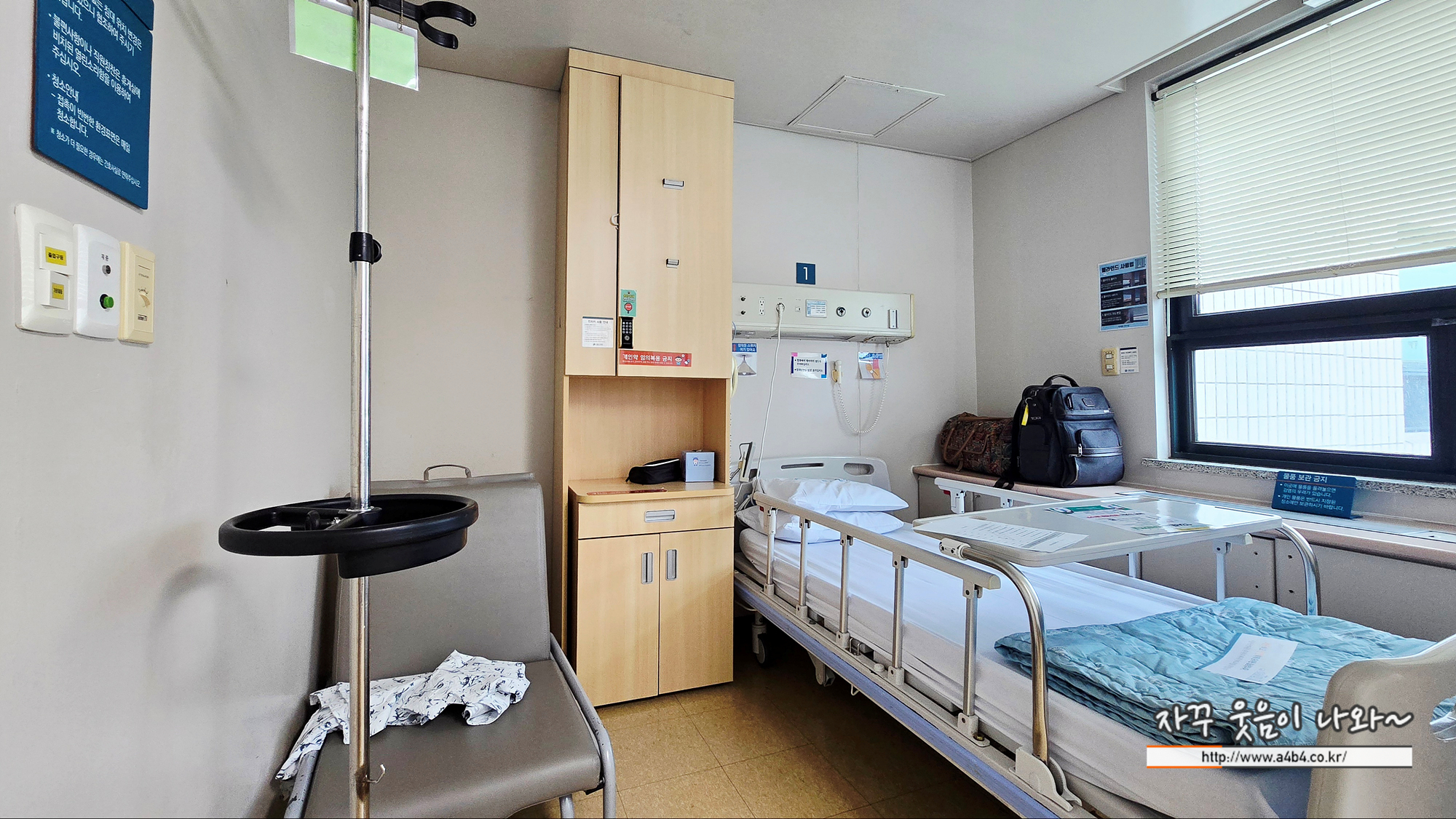 공간은 4인실에 비해서 상당히 여유 있는데요. 4인실의 경우에도 기존 6인실은 4인실로 변셩해서 예전과 같이 공간이 숨막히지는 않습니다만, 저는 4인실이 없어 2인실 배정받고. 여기에 2일차 부터는 입원환자분이 없어 독실로 사용했네요.