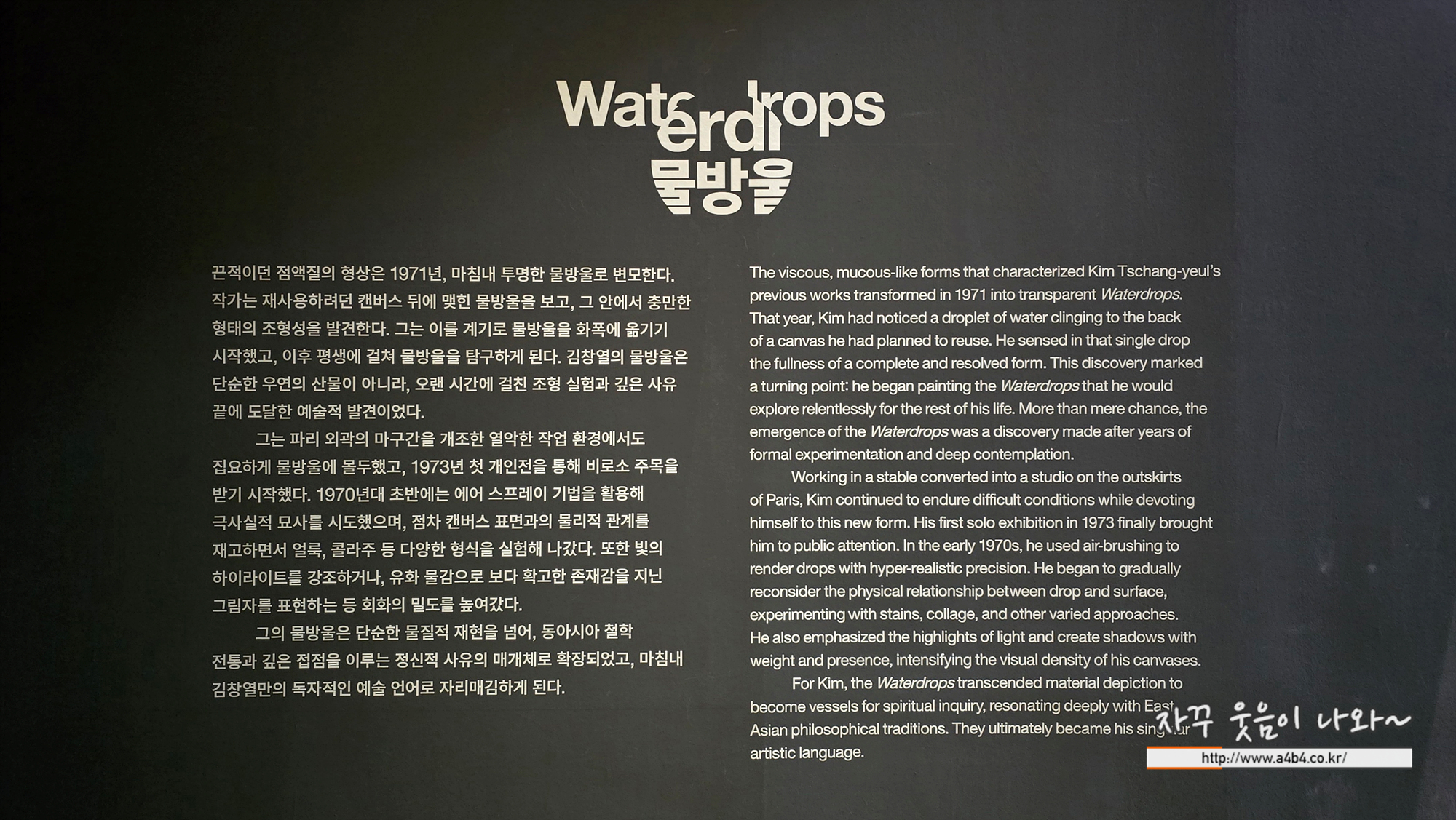 오늘은 김창열 전시회 3장 물방울과 4장 회귀 전시관 소개합니다.