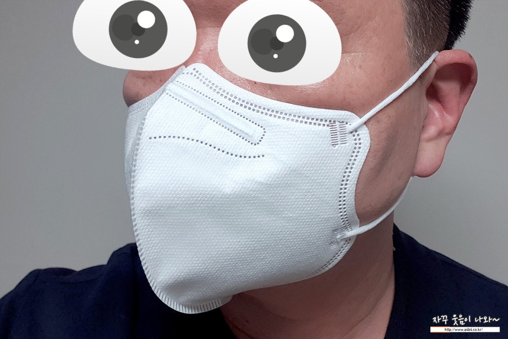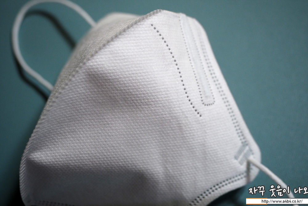 KF94 마스크 중에서는 상당히 얇은 두께를 보여 주는데요. 두께에 비해 마스크는 상대적으로 단단합니다. 다만 마스크가 얇다 보니 호흡에 따라 마스크 부직포 움직임도 심합니다. (처음에는 탁탁 소리도 들려요)