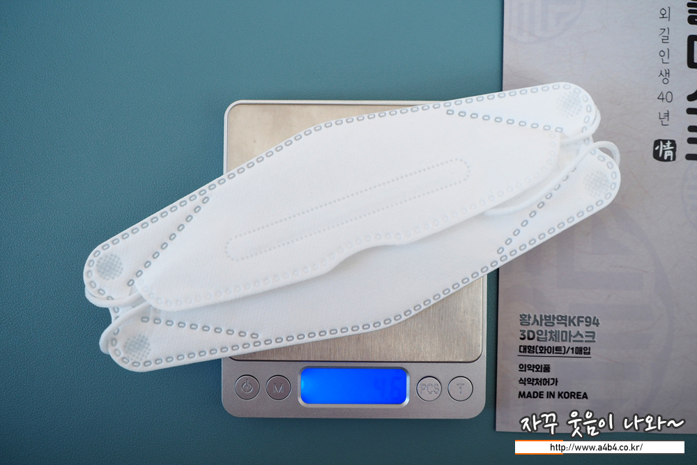 마스크 중량은 4.6그램으로 일반 대형 마스크 중량을보여줍니다.