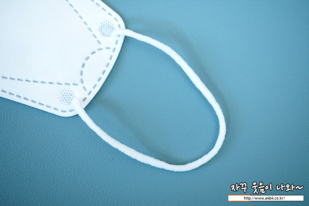 둥근 모양의 귀걸이끈이 사용되었으며, 마스크 앞쪽에 접착되어 있습니다. 귀걸이끈 장력은 보통수준
