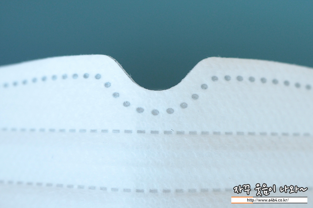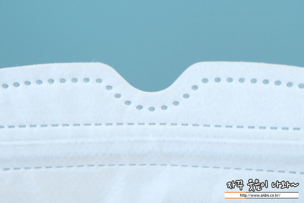 이 부분은 상중하 3장의 부직포 접합 위치에서 생기는 부분인데요. 마스크를 넓게 사용할 수 있지만 밀착감과 공간감을 희생해야 합니다. 입에 딱 붙는 마스크가 되어 버렸네요.