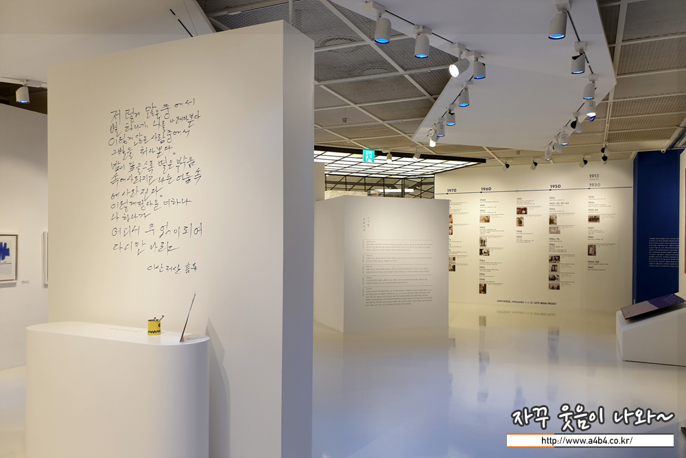 장소는 작지만 항상 흥미롭고 새로운 전시회를 진행하고 있는 잠실 롯데월드타워 에비뉴엘 아트홀에서 열리고 있는 김환기 화백 전시회 'UNIVERSE_WHANKI 1-I-21 LOTTE MEDIA PROJECT' 전시회가 열리고 있습니다.