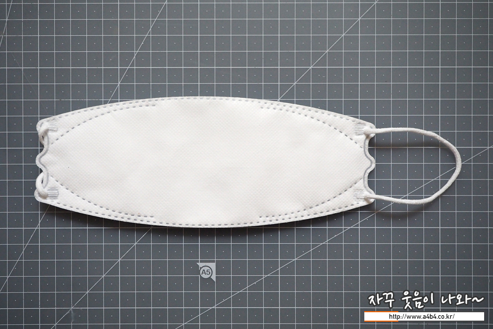 마스크 디자인인 일반적인 가로 삼단접이식 3D 스타일 입체형 마스크 모양을 보여줍니다. 뉴엠 마스크의 특징인 양쪽 끝 이어밴드 접합 부위의 튀어나온 3개의 뿔이 보이네요. 어떤 깊은 뜻이 있는지는 모르겠지만 착용감에는 영향 없는 것 같습니다.