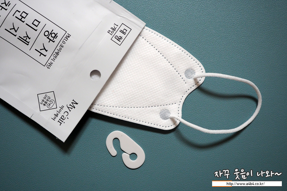 마이케어 마스크는 둥근 모양의 이어밴드가 마스크 앞면에 접착되어 있으며 이어밴드 탄력은 강한 편입니다. 짱짱...