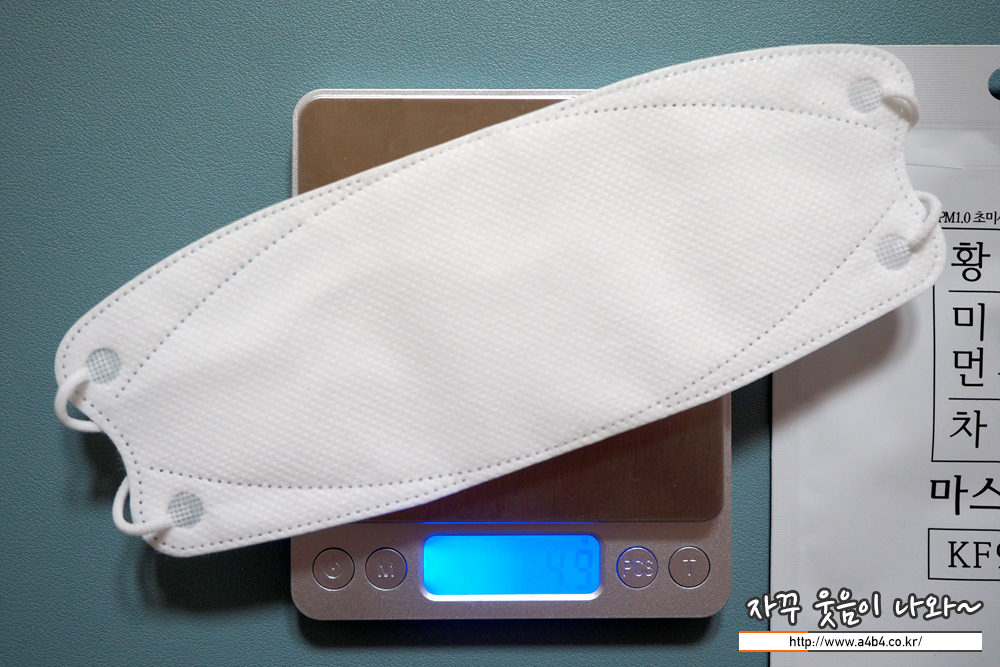 KF94 마이케어 황사방역마스크 대형 중량은 4.5그램으로 타사 대형 마스크와 비슷한 중량을 보입니다.