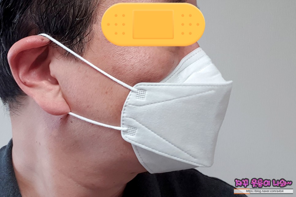 둥근 모양의 이어밴드는 마스크 전면에 접착되어 있으며, 이어밴드 탄력은 다른 제품과 비슷 합니다.