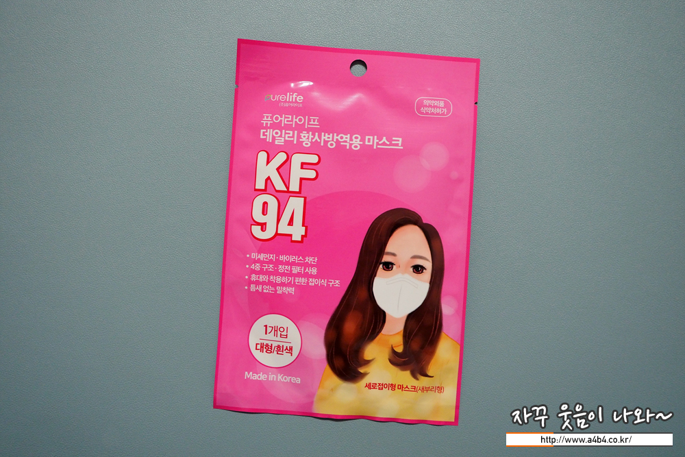 식품의약품안전처 의약품안전나라 등록명칭은 '퓨어라이프데일리 황사방역용마스크 (KF94)'로 대형, 흰색 마스크입니다. 작연 10월 승인된 마스크로 주식회사 퓨어라이프에서 제조 및 판매하고 있습니다.