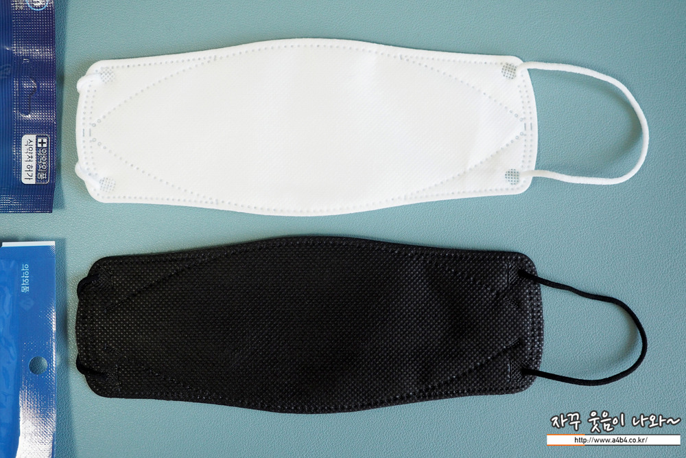 막상 두 제품을 개봉해서 비교하는 거의 동일한 제품입니다. 우선 외형 사이즈와 디자인에서는 차이점을 발견하지 못했습니다. 마스크 앞면과 뒷면의 디자인, 사이즈, 접합 부분의 처리도 동일합니다.