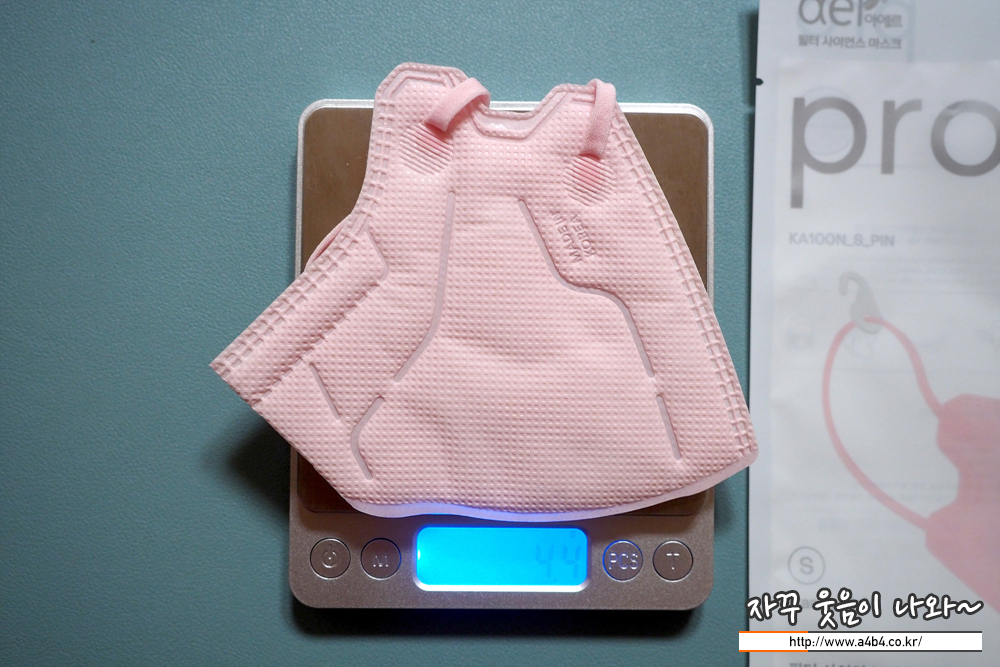 핑크 마스크 아에르 프로 소형 S 중량은 4.4그램으로 소형 사이즈 마스크 중에서는 중량감이 있네요