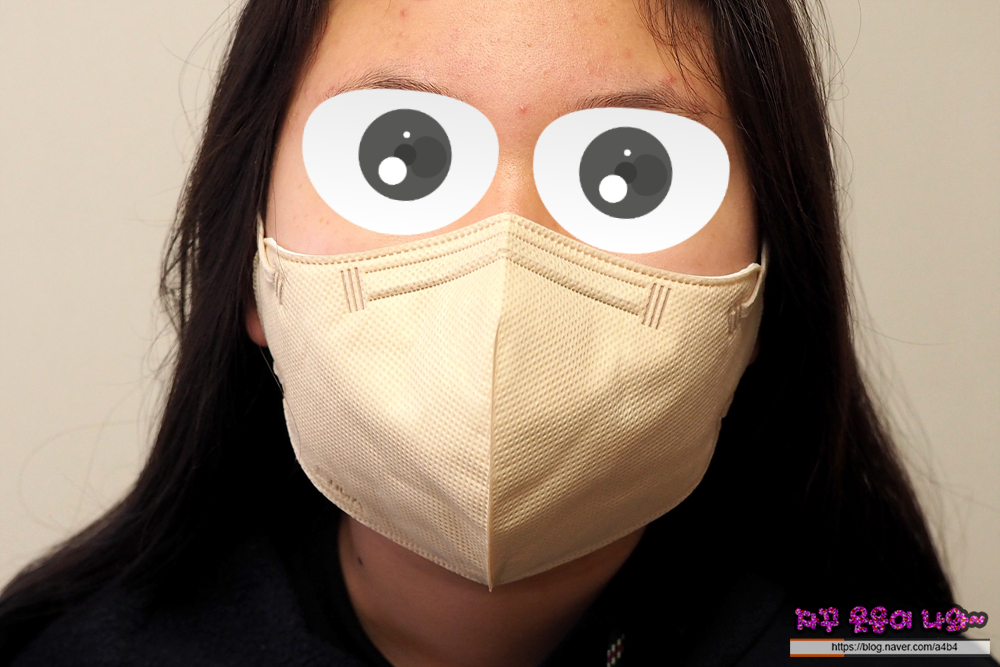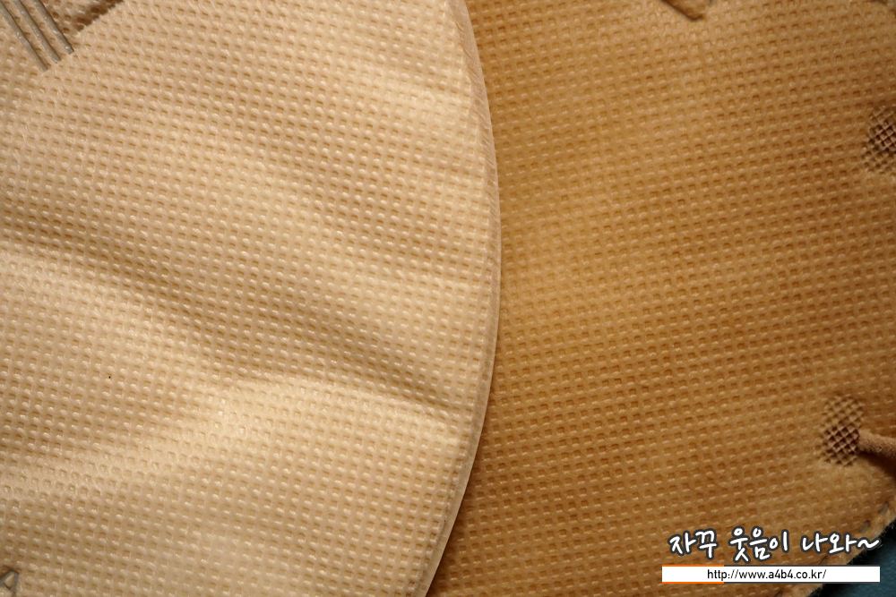 아에르는 아이보리와 베이지 두 색상의 제품을 판매하고 있는데요. 사진속의 마스크는 베이지 입니다. 상대적으로 상당히 진해 보이네요. 오히려 아에르 마스크 아이보리와 비슷한 색상입니다.