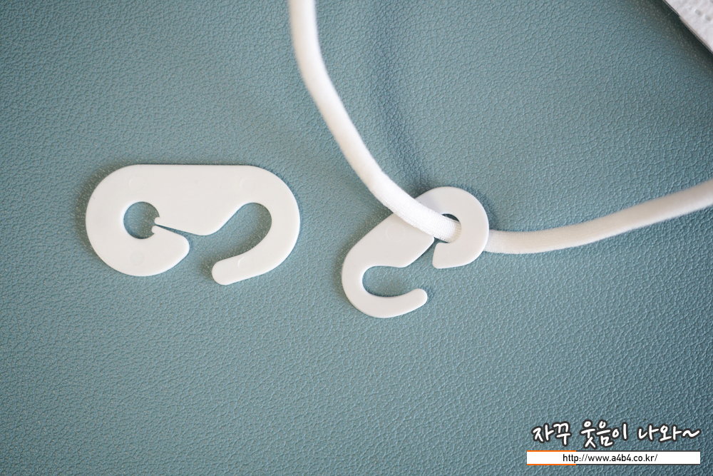 마스크 밀착감을 도와주는 후크 포함제품입니다. 후크 크기는 조금 작은 타입입니다. 왼쪽 후크가 일반적인 마스크에 포함된 후크입니다.