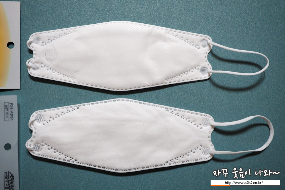 비티 마스크는 소프트한 스타일의 얇은 마스크로 무난한 착용감을 보여줍니다. 다만 얇고 소프트한 타입으로 착용핏이 잘 나오지는 않습니다. (마스크가 조금 우네요...) 그렇다고 착용감이나 마스크 안쪽 공간 확보에 문제가 있지는 않습니다. 전체적으로 무난한 타입의 마스크입니다.