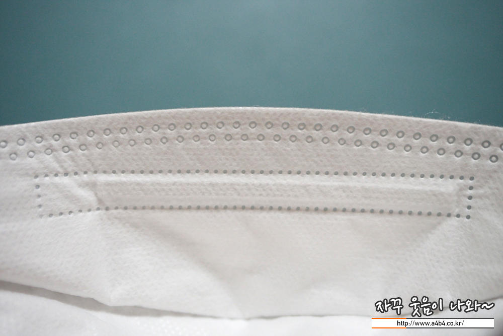 비티 마스크 내피는 드라이한 촉감의 부직포가 내피로 시용되었습니다. 마스크 내피에 보풀은 없지만 마스크 접착면 주변으로 약간의 보푸라기는 보이네요.